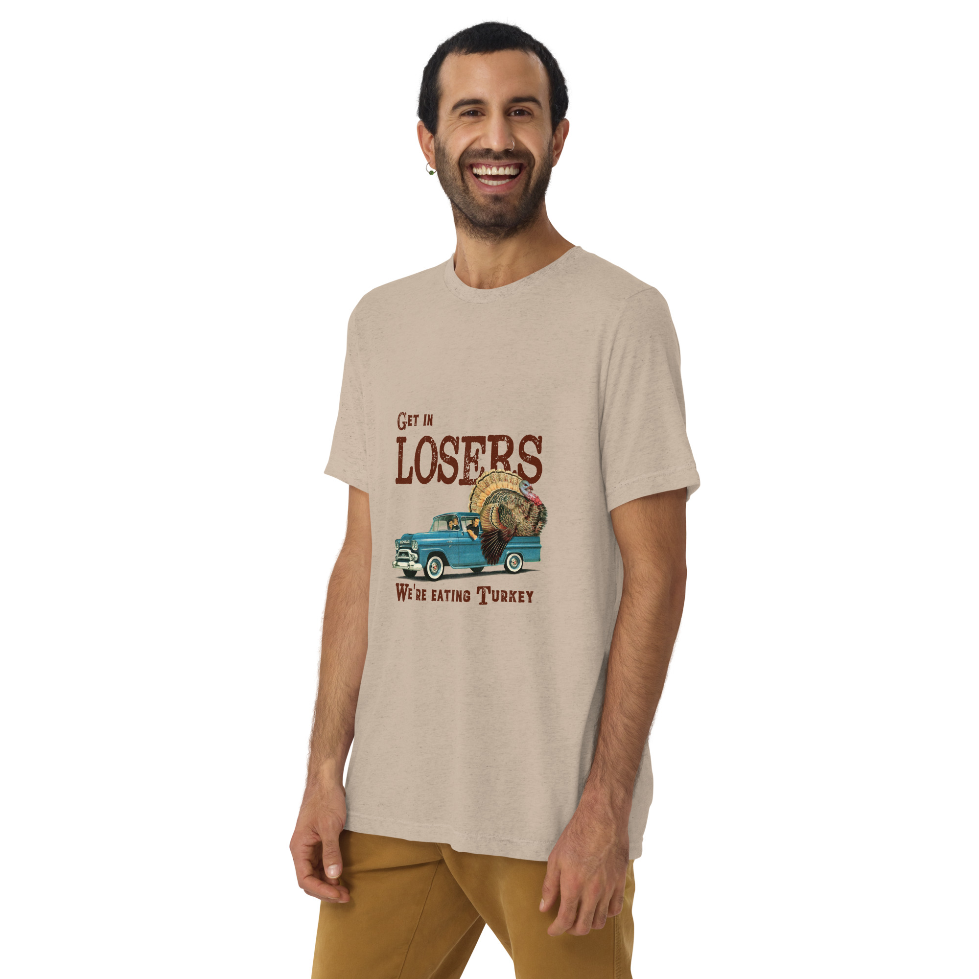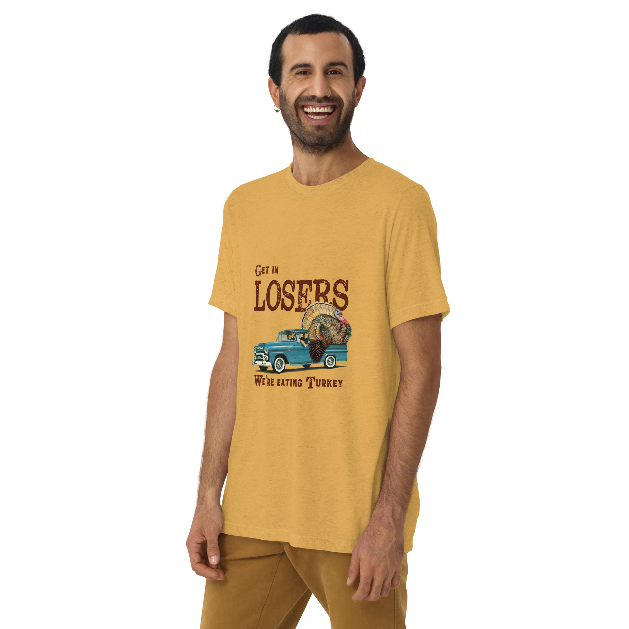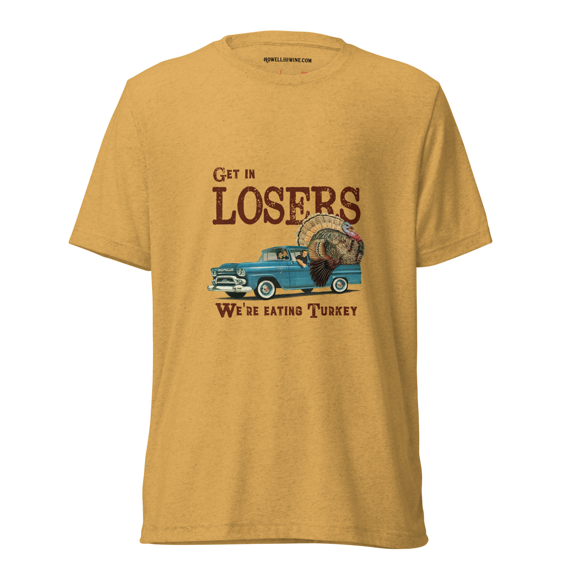 Buckle up, buttercup — it’s turkey o’clock. This pickup’s packed with bad decisions, good gravy, and one seriously overstuffed bird. Whether you’re rolling up to Grandma’s or outrunning your food coma, this shirt says you came to feast and cause a little chaos. The tri-blend keeps things comfy and chaos-ready. The vintage, fitted look and soft feel make it your go-to for every holiday road trip — or escape.