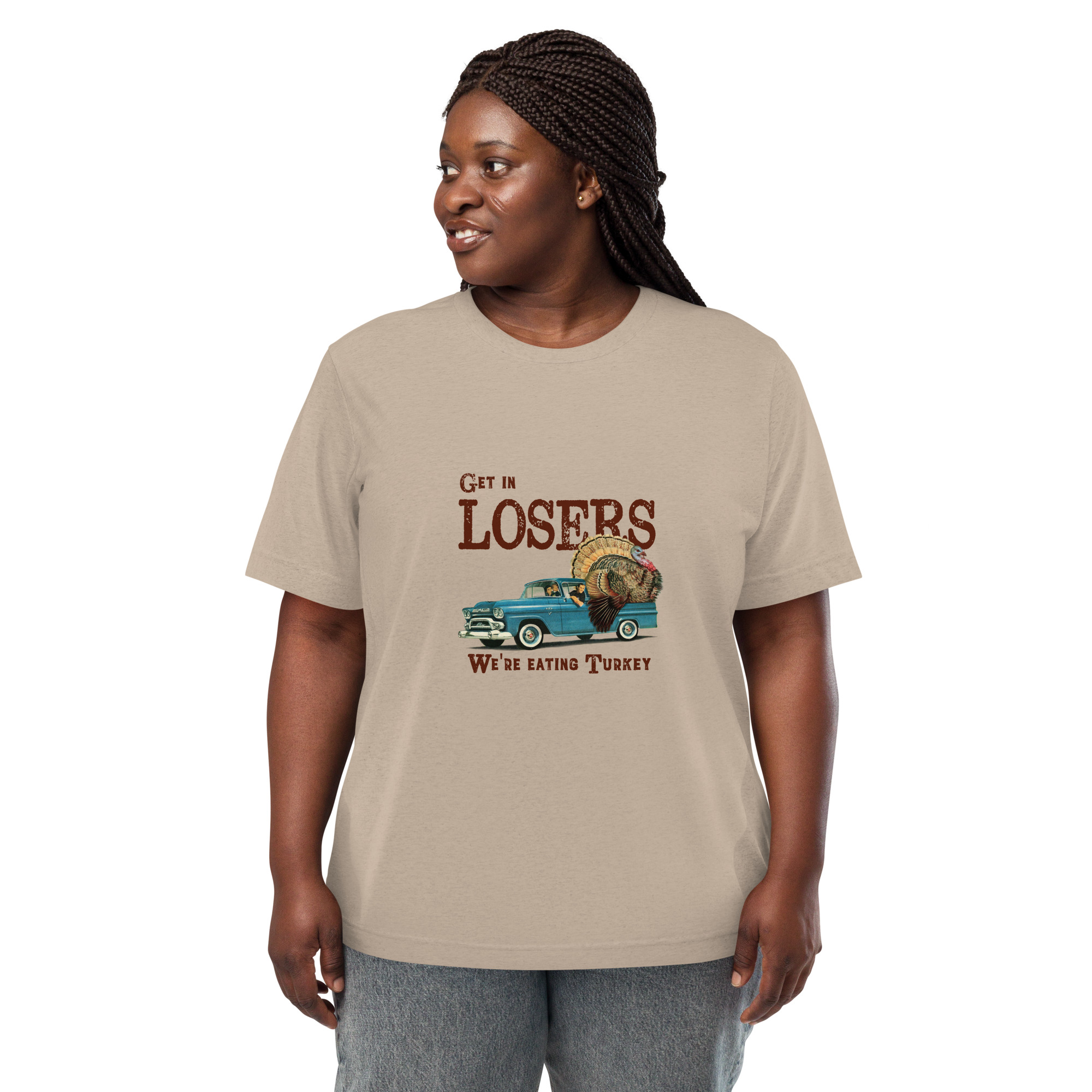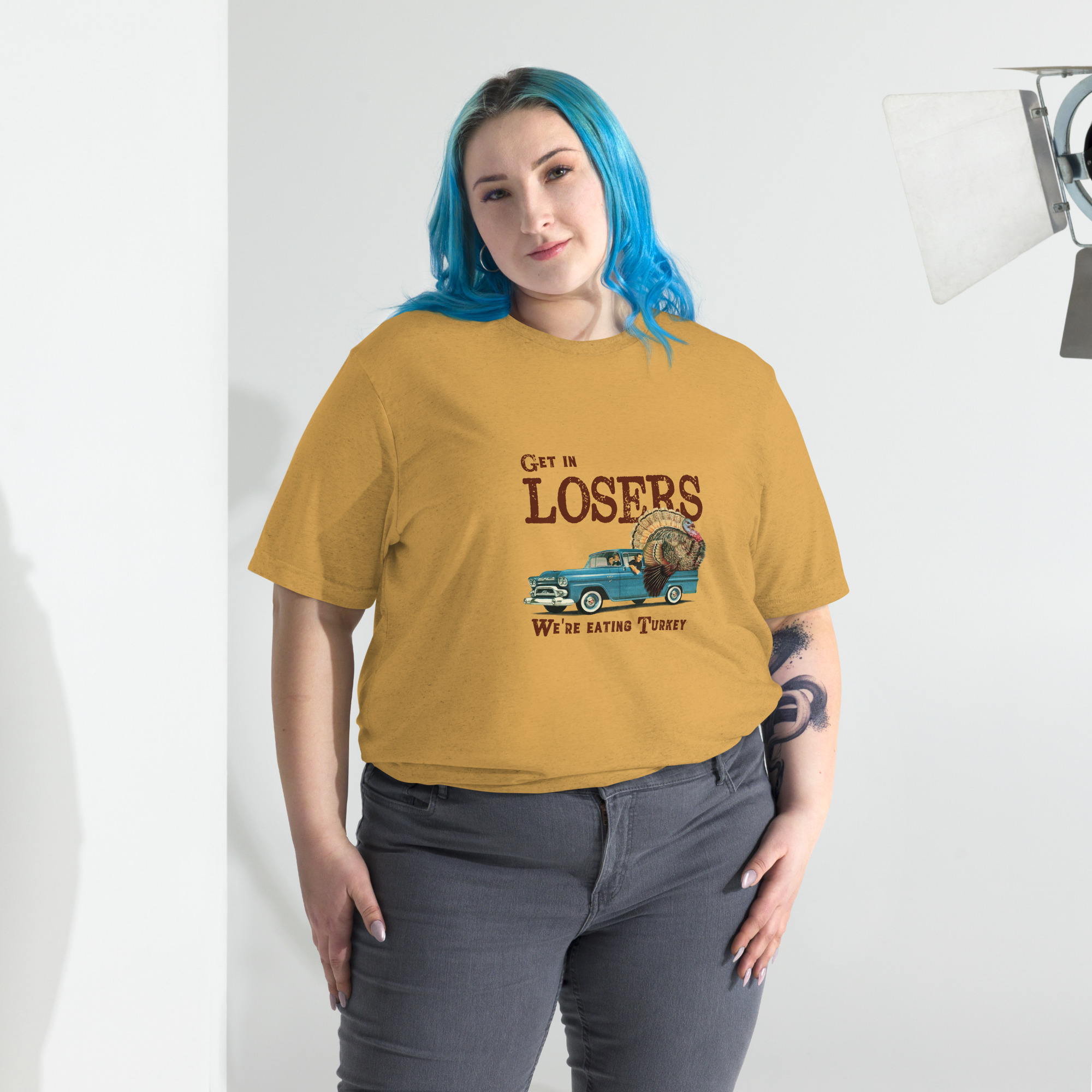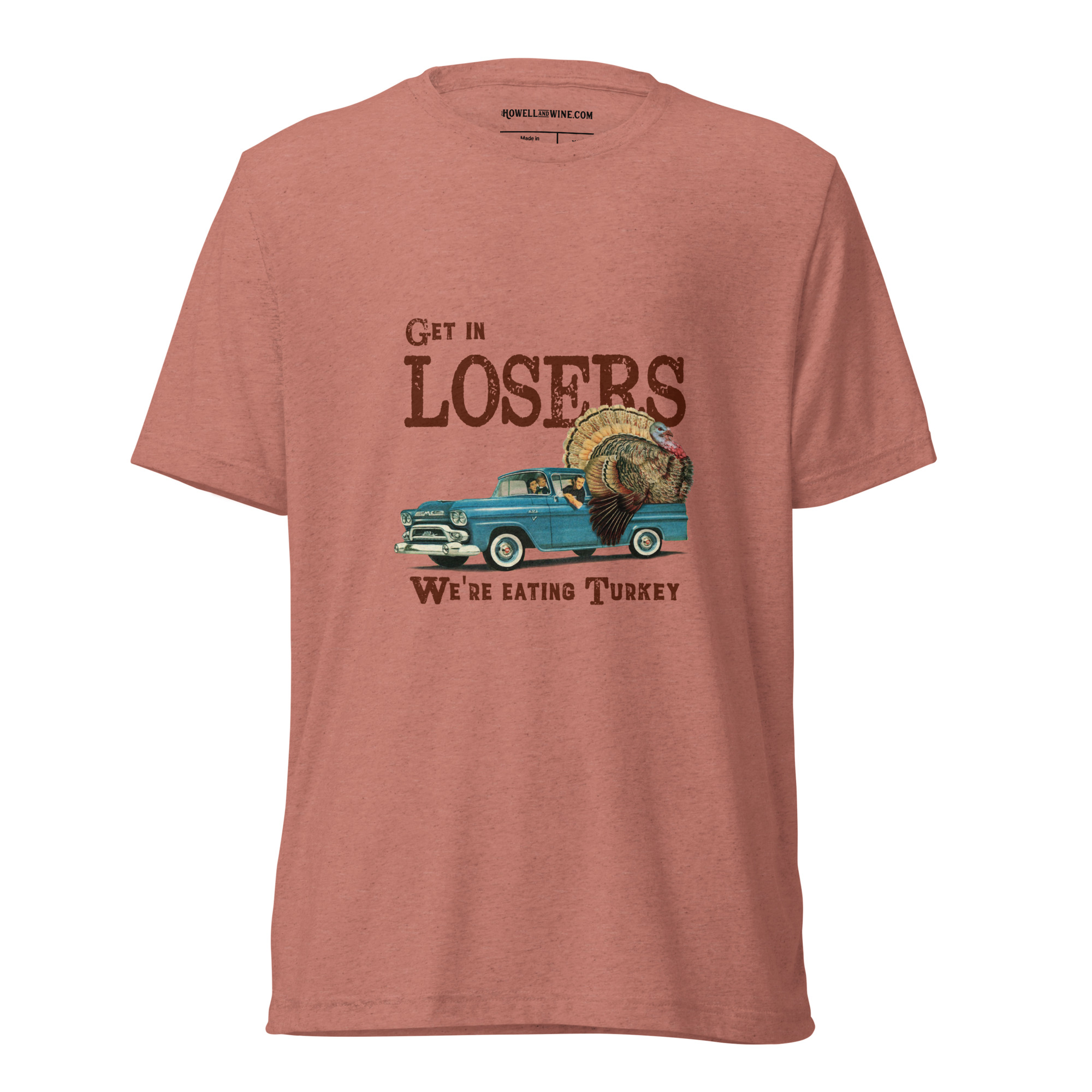 Buckle up, buttercup — it’s turkey o’clock. This pickup’s packed with bad decisions, good gravy, and one seriously overstuffed bird. Whether you’re rolling up to Grandma’s or outrunning your food coma, this shirt says you came to feast and cause a little chaos. The tri-blend keeps things comfy and chaos-ready. The vintage, fitted look and soft feel make it your go-to for every holiday road trip — or escape.