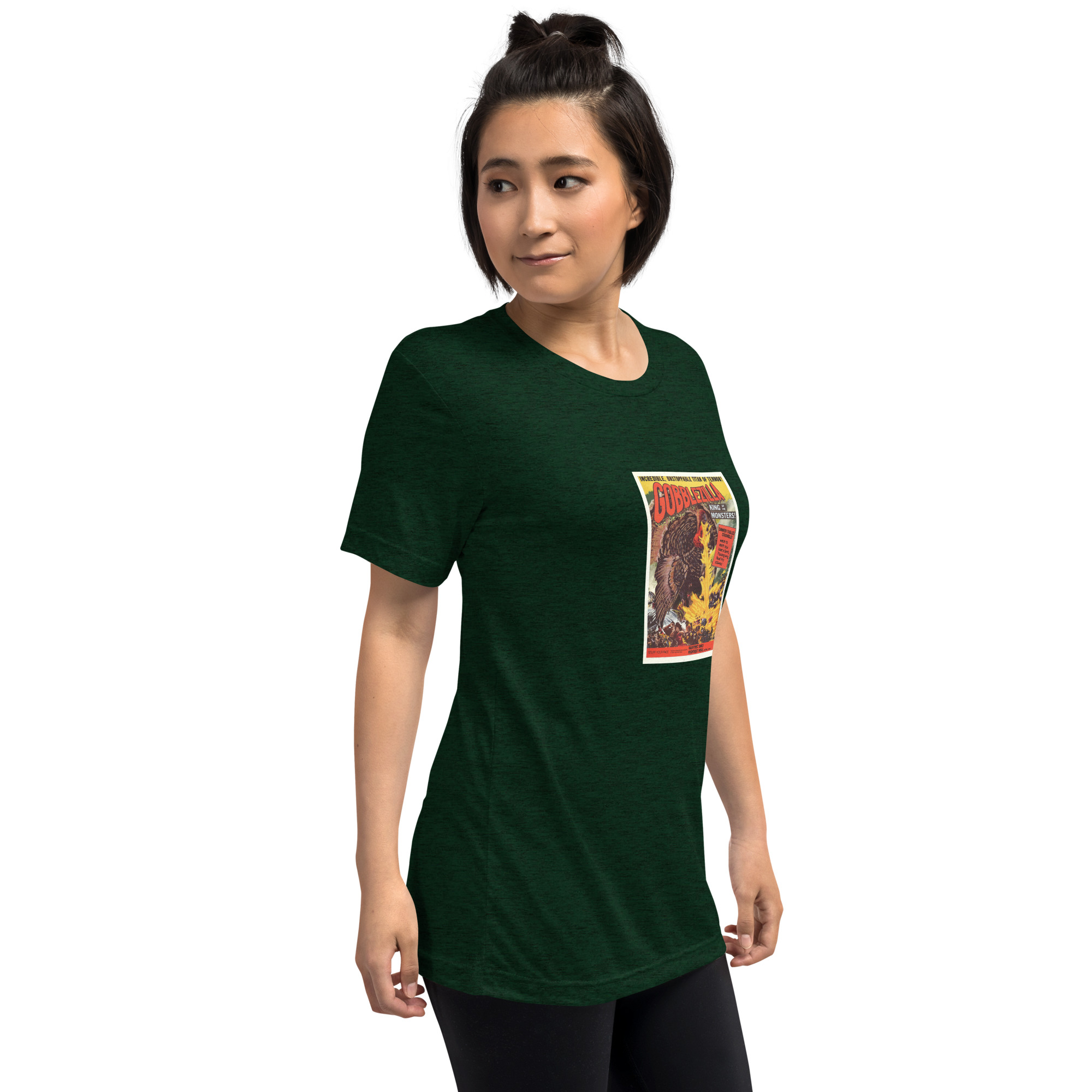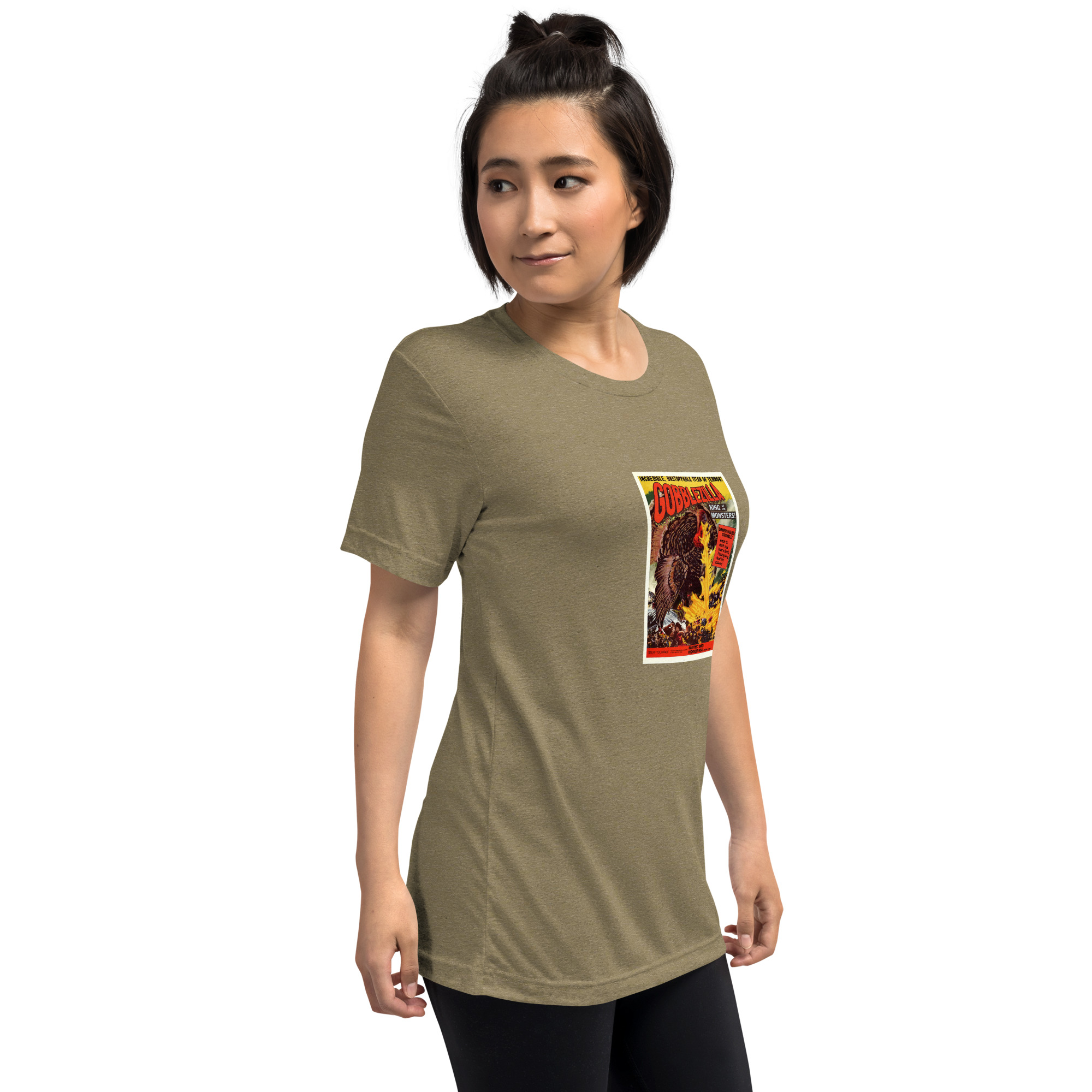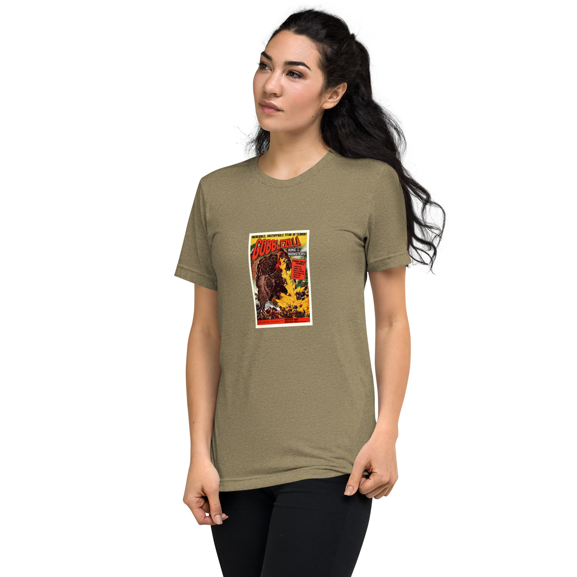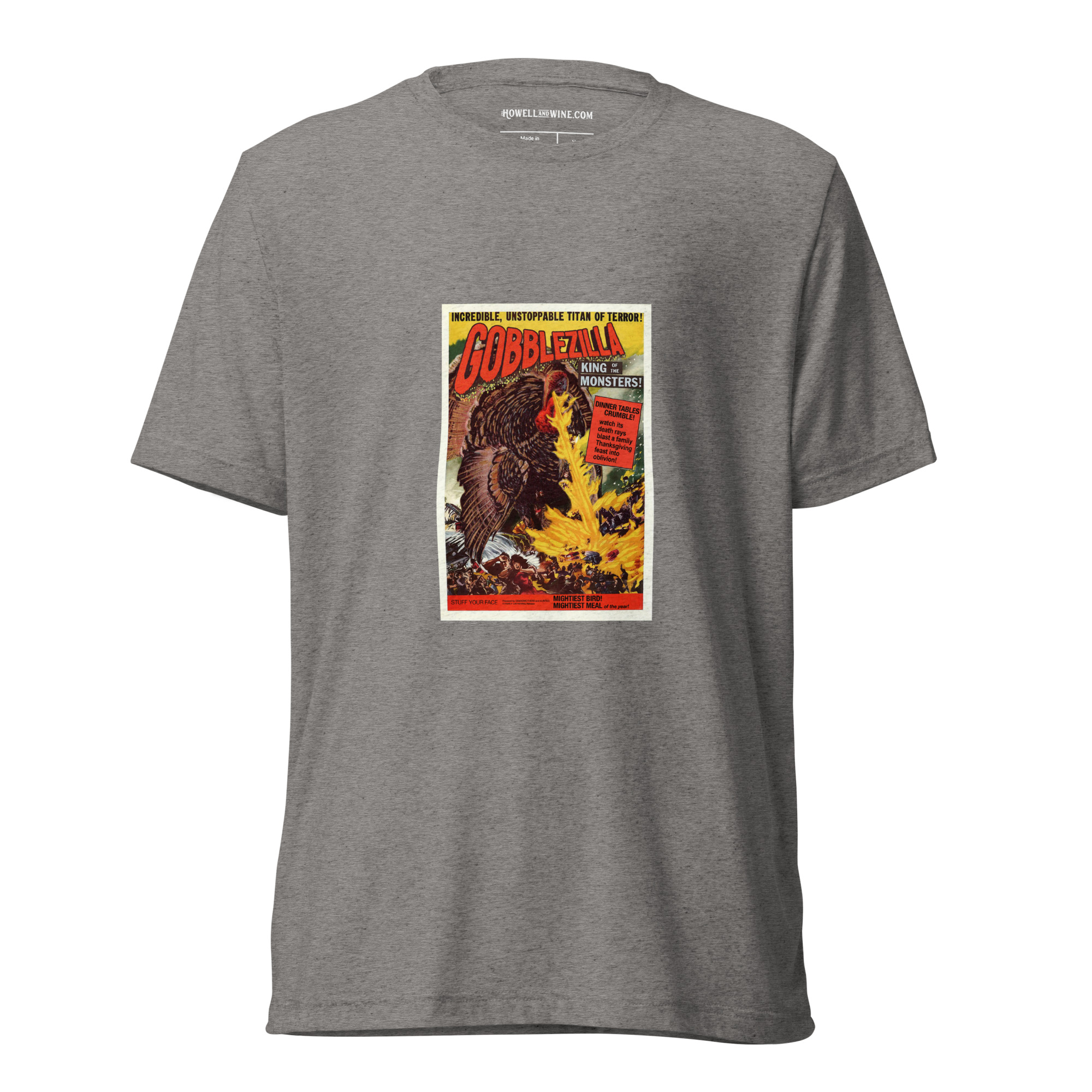 Hide the leftovers and evacuate the kitchen — Gobblezilla has risen! With death rays of cranberry sauce and stuffing shrapnel flying, this bird is serving apocalyptic entree energy. For those who like their Thanksgiving loud, proud, and slightly radioactive. The tri-blend fabric gives it that soft, vintage feel — tough enough to survive Thanksgiving and every wash after. Fitted, durable, and dangerously comfortable. Proceed with gravy caution.