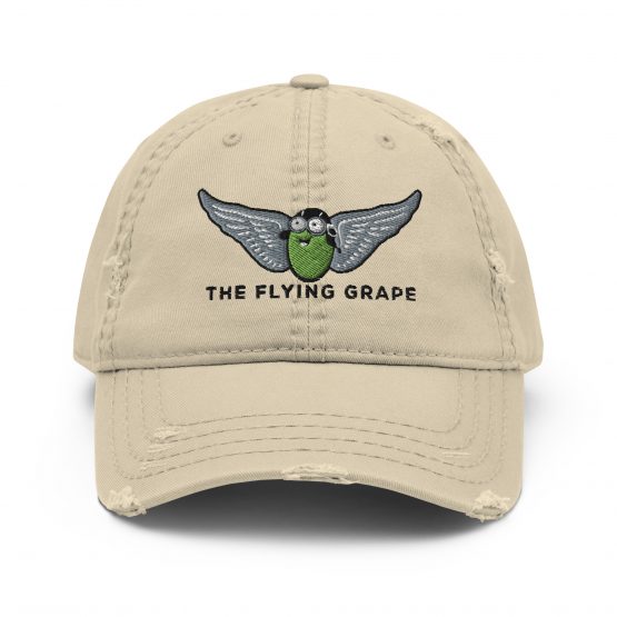 This stylishly worn-in dad hat is for seasoned swirlers, spontaneous vineyard-hoppers, and anyone whose suitcase always smells faintly of cork. Featuring THE FLYING GRAPE logo, it says “I’ve been to wine country… and I’ve got the hat to prove it.” The distressed details give it that perfect “lost in a vineyard once” vibe, and it pairs well with wine-stained jeans, breezy travel slacks, or your favorite tasting tee. Wear it on your next wine adventure—or to manifest one from your patio.