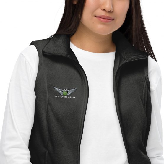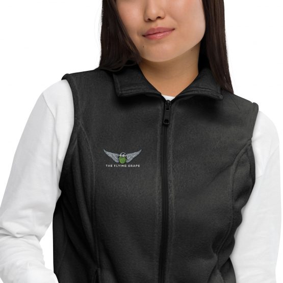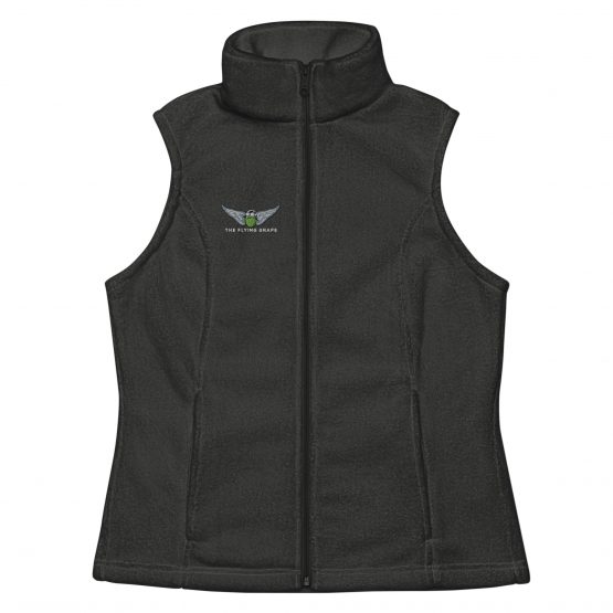This cozy fleece vest is your go-to layer for misty vineyard mornings, breezy tasting patios, and spontaneous side quests through wine country. Soft, flattering, and embroidered with THE FLYING GRAPE logo, it gives just the right amount of warmth without messing up your outfit—or your swirl technique. Whether you’re strolling the vines, sipping in the cellar, or running errands while daydreaming of Provence, this vest pairs beautifully with boots, scarves, and a glass of something elegant. Comfort never looked so cultivated.