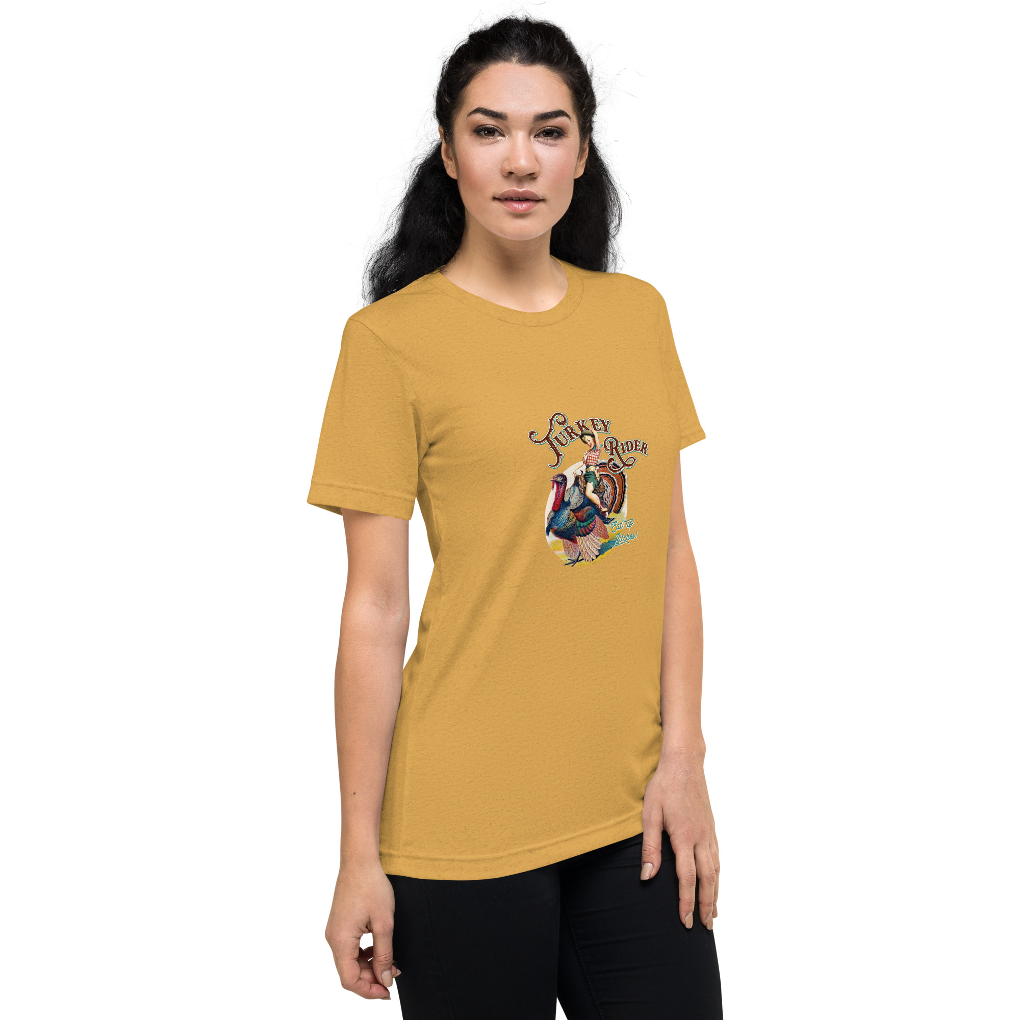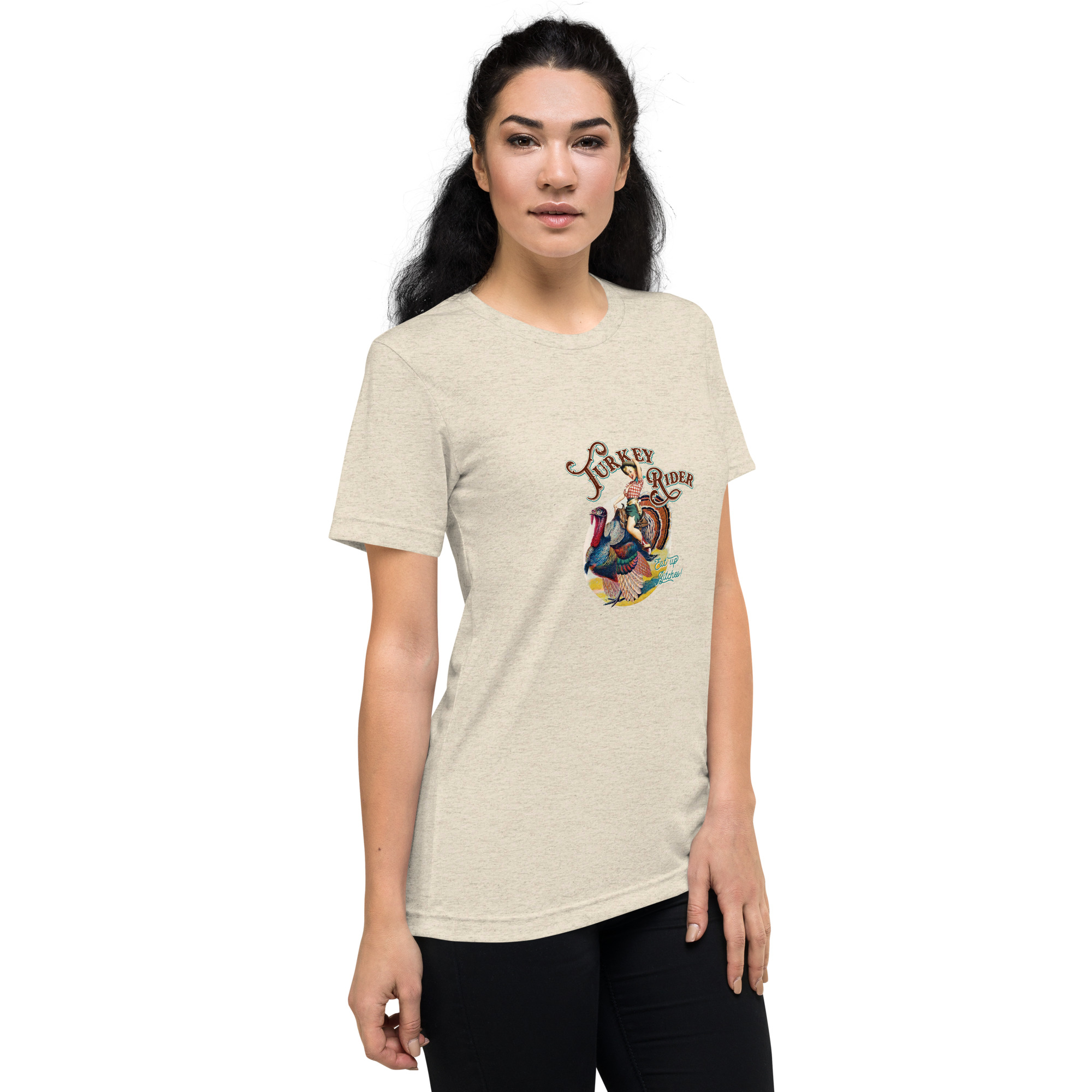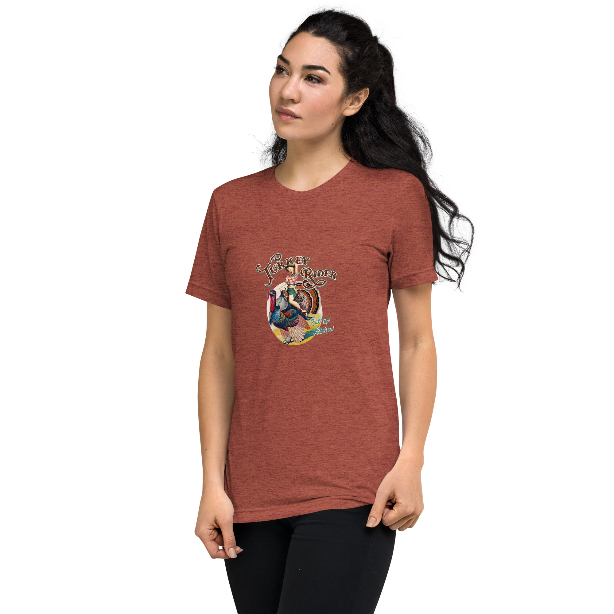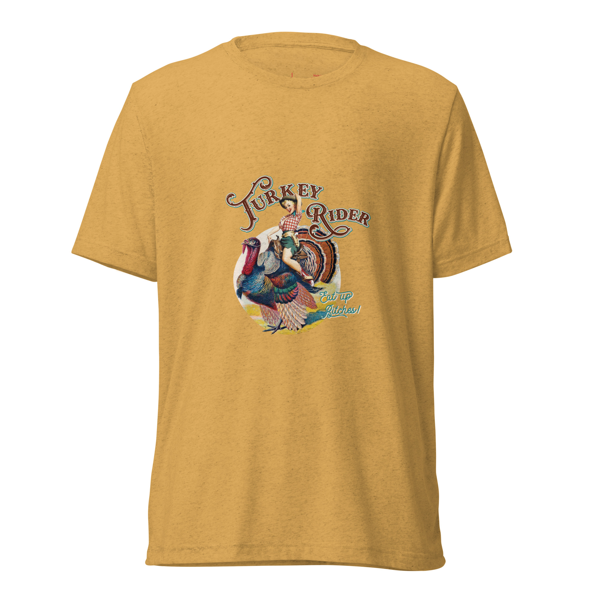 Saddle up, pass the stuffing, and show the table who’s boss. This rowdy cowgirl isn’t waiting for the gravy to cool. Ride into Thanksgiving dinner like a legend and remind everyone how to pass the stuffing. Perfect for the bold, the hungry, and anyone who likes their holidays with a side of sass. Printed on a super-soft tri-blend tee that creates a vintage, fitted look built to last through every feast, spill, and spin cycle. Durable, comfy, and just a little wild — kind of like you.