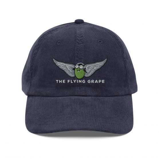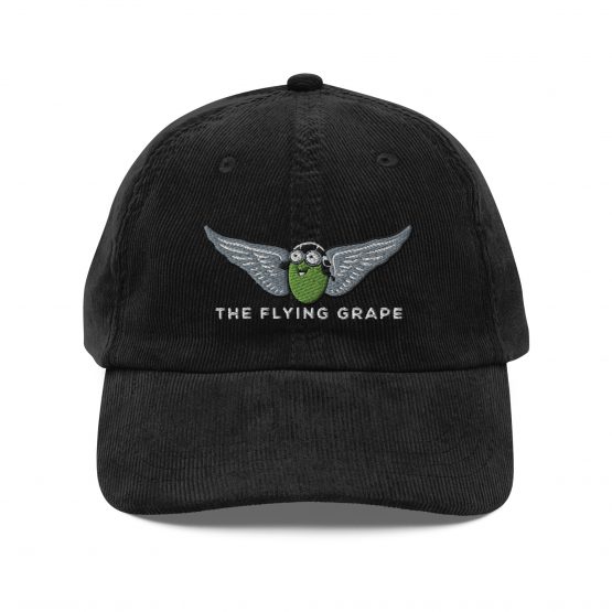 This embroidered corduroy cap featuring THE FLYING GRAPE is old-school cool with a wine lover’s twist—think harvest-season style meets “I’ve got opinions about tannins.” Made from 100% cotton corduroy that’s soft enough for long travel days and vineyard strolls, it features an adjustable strap with a gold-colored buckle, because even casual should feel a little luxe. Shield your eyes from the sun (or your friends’ questionable wine choices) and top off your look with this classic cap. Pairs well with countryside views and a generous pour.